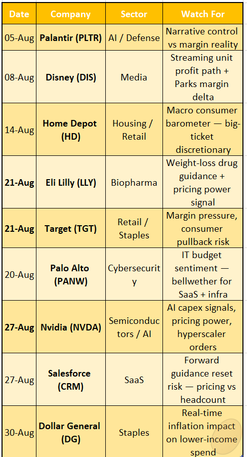 August may be volatile - but it’s also event-rich, with macro catalysts and second-half earnings stragglers that could reshape positioning into September.