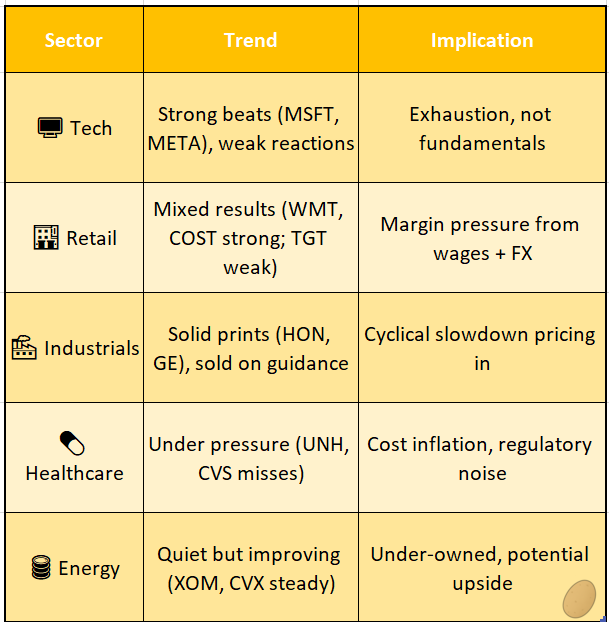 This is a seller’s tape, not a buyer’s tape. Earnings season is doing what macro couldn’t - exposing fragility through price action.