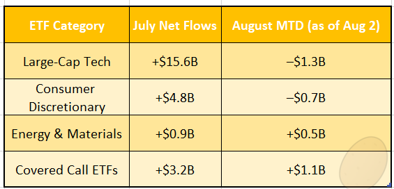 ETF flows in July totaled $62B - the 4th highest monthly inflow on record.