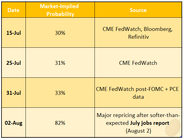 July 31: Market-implied odds of a September rate cut were ~30%.
