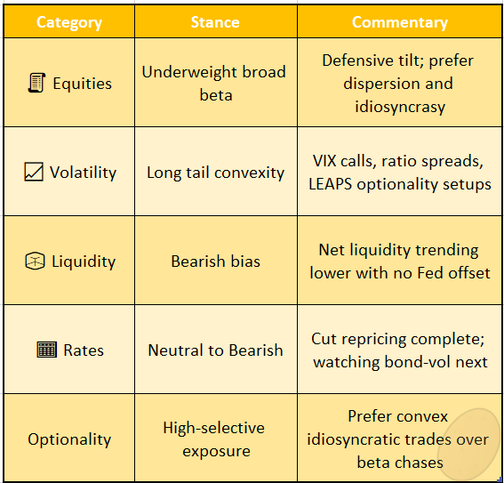 The volatility regime has turned. This is not a spike to sell - it’s a structural rotation. With flows thinning and earnings dispersion rising, this volatility is sticky, not transient.