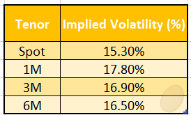 Inverted Structure: The curve is no longer upward-sloping (contango) - 1M > 3M > 6M, which is atypical.