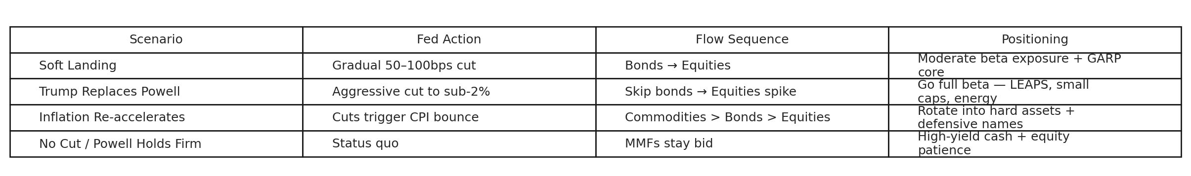 Every scenario has a liquidity outcome. Our edge lies in pre-positioning based on policy signaling, not reactionary trading.