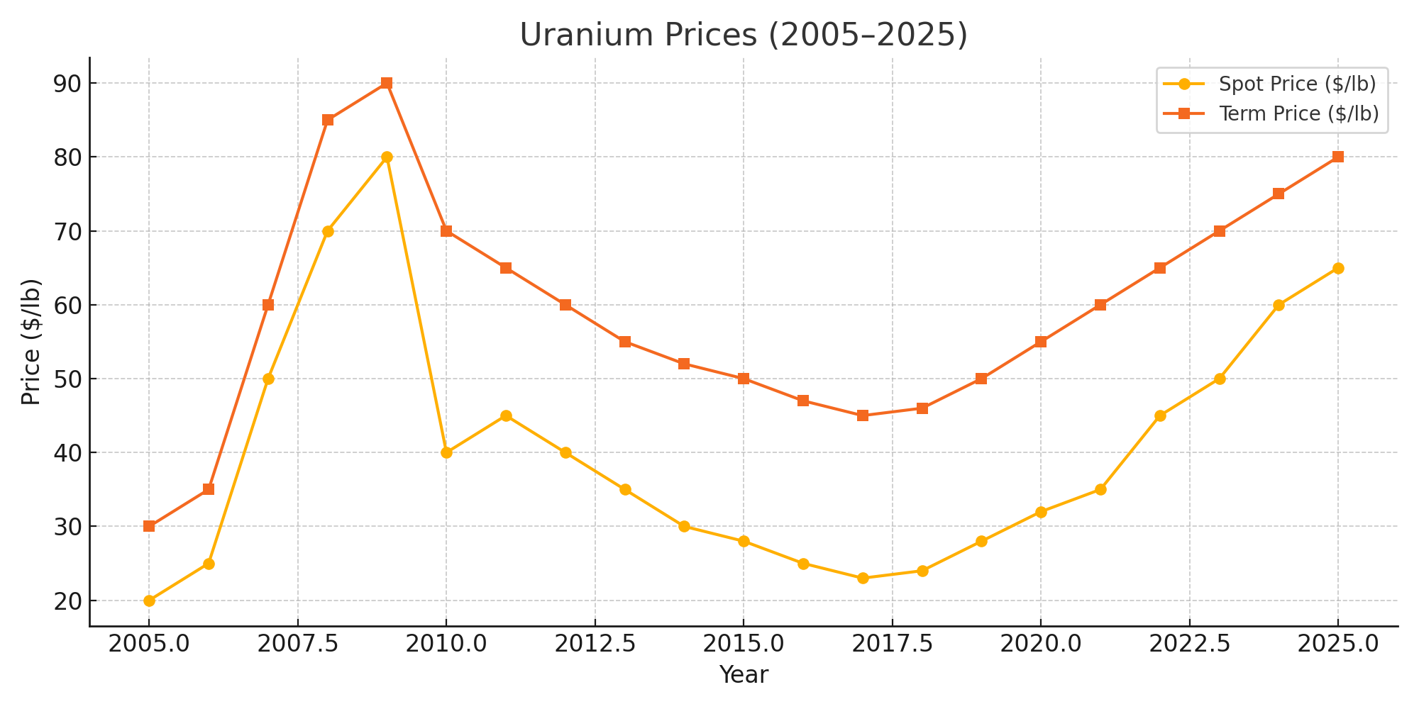 ✅ Spot uranium rebounding: ~$71–75/lb (U3O8), while term prices continue rising