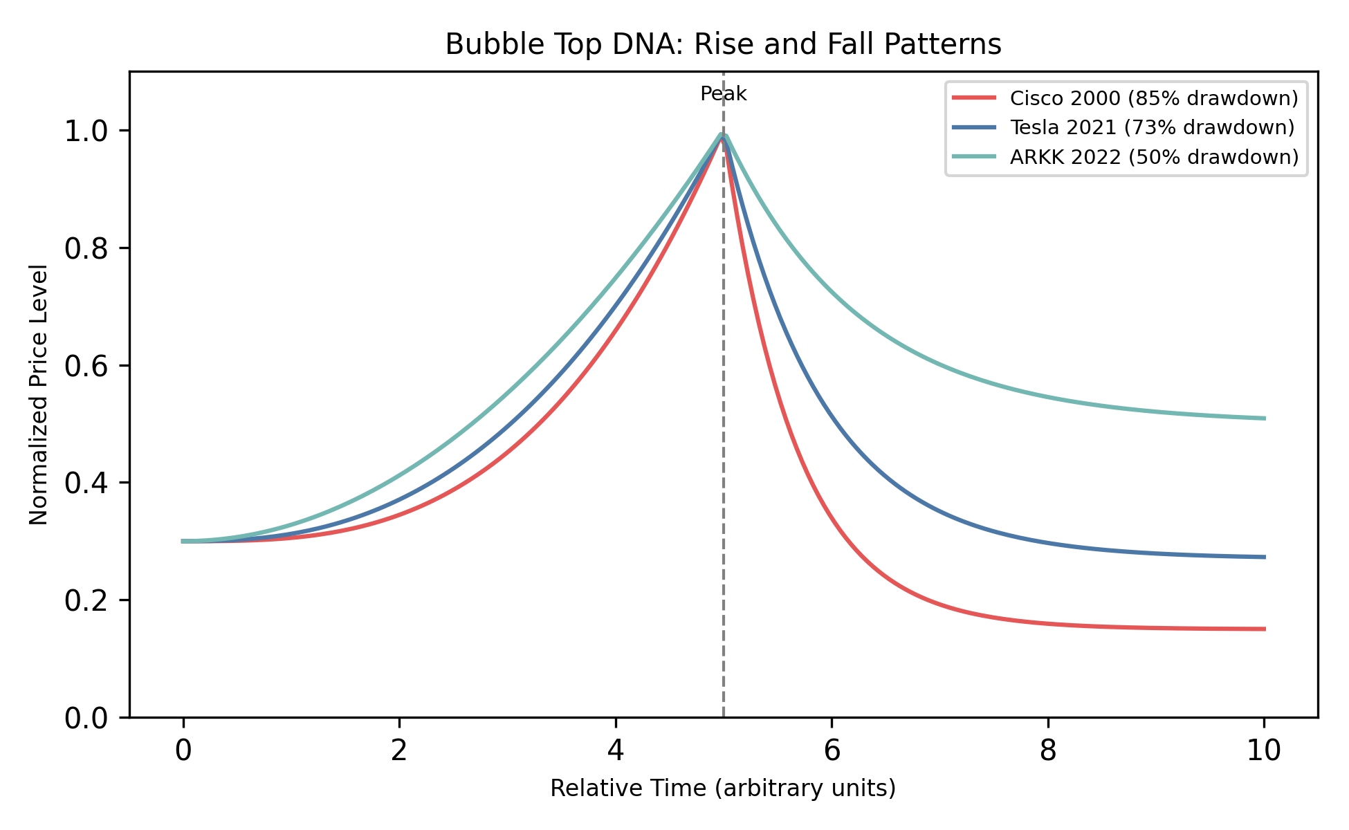 Markets reward capital that sees optionality early - not late capital chasing the loudest story. Every major bubble top has the same DNA: exponential backward‑looking growth, narrative saturation, options froth and institutional crowding. When growth merely normalizes, drawdowns of 30–50 % can happen in a blink.