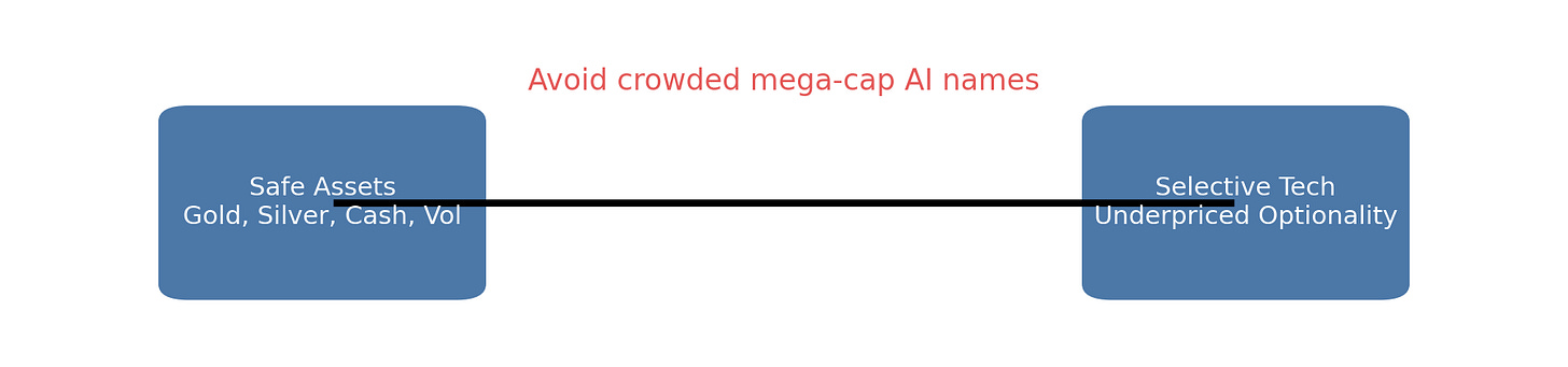 Middle: Avoided entirely - crowded mega‑cap AI names are un-investable at current implied expectations.