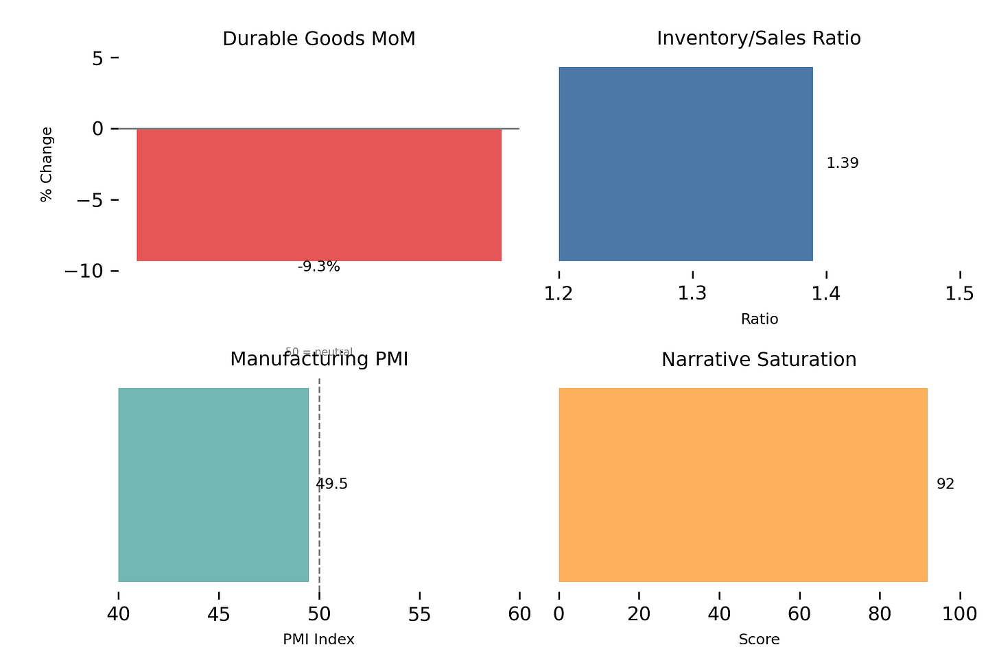 Inventory/sales imbalances (total business inventory‑to‑sales ratio ≈1.39).