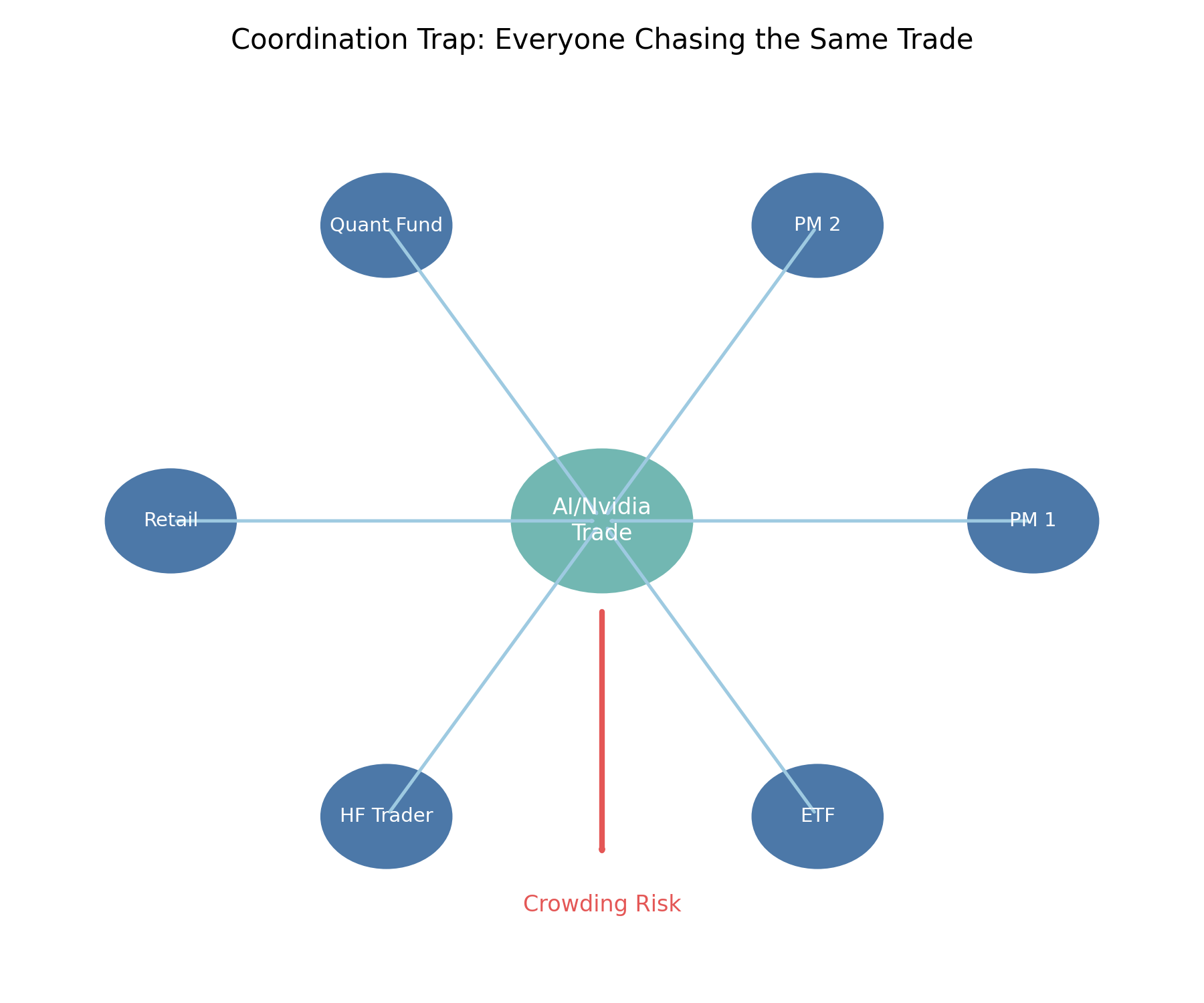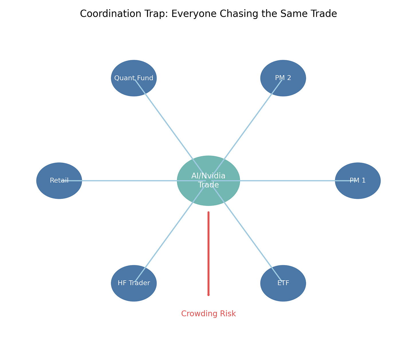 In game theory, this setup is called a coordination trap: every investor thinks the optimal outcome is being long the AI boom - and Nvidia is the easiest proxy. As each player piles into the same trade, the collective outcome worsens.