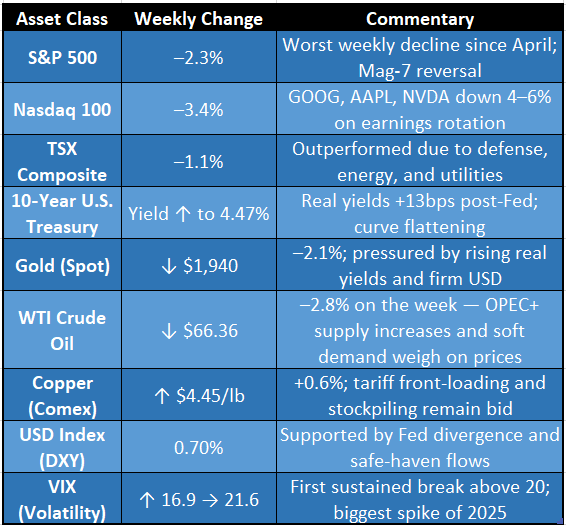 The selloff wasn’t just about earnings - it was a synchronized macro repricing. Volatility spiked. Real yields rose. Oil cracked. Copper held up - but the commodity bid is being tested. The regime is shifting from flows and FOMO to policy and positioning.