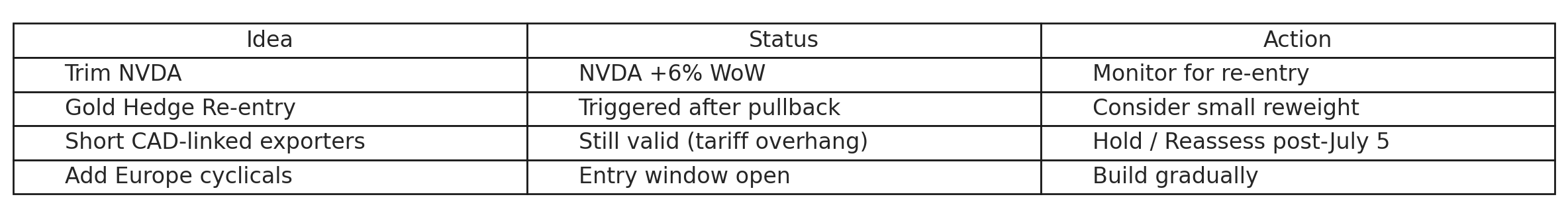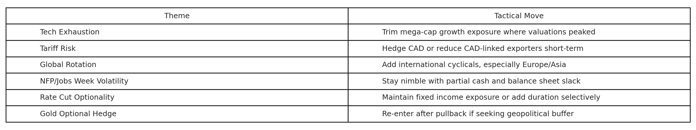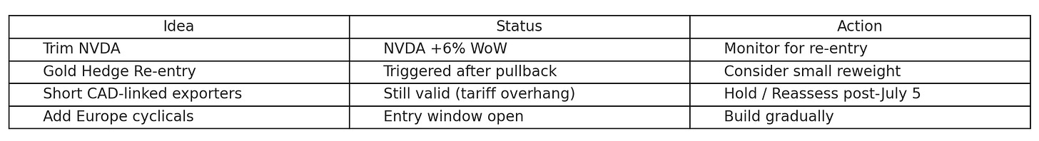 But let’s be clear: valuations are high, positioning is crowded, and July catalysts (NFP, CAD jobs, trade headlines) could shift sentiment quickly.
