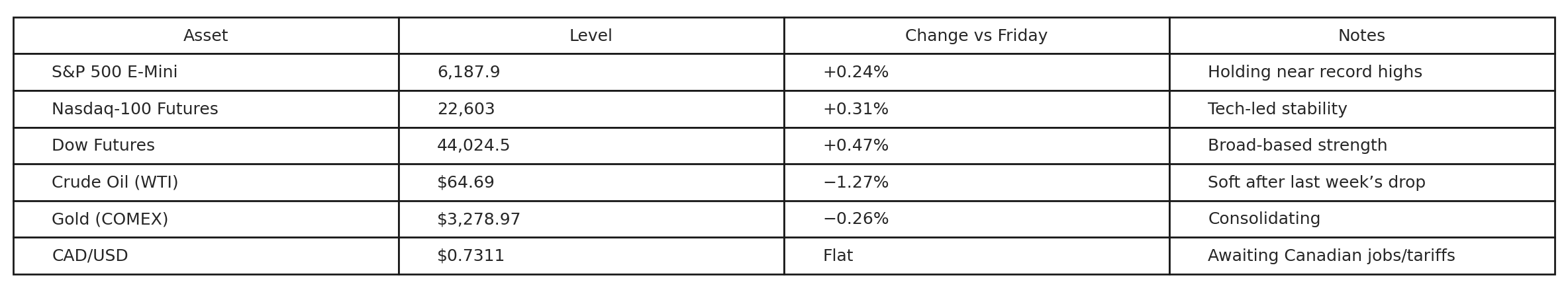 📉 Futures Snapshot (as of Sunday 7:00 PM ET)